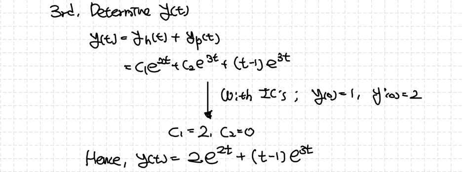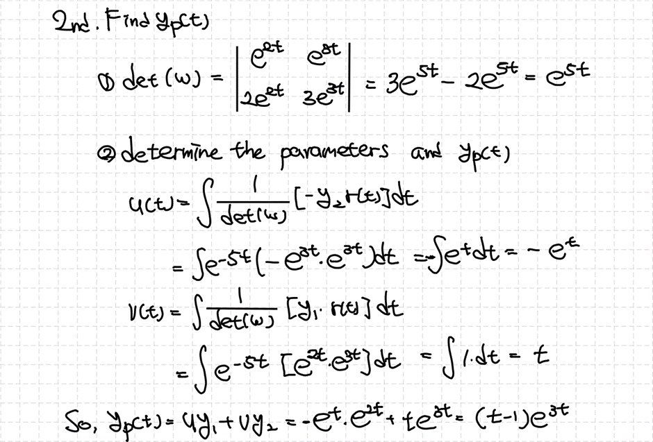 그리고 매개변수 변환법을 이용해서 $y_p(t)$를 구할 수 있습니다.