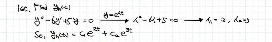 우선 제차 상미분방정식일 때의 해 $y_h(t)$일 때의 해부터 구하겠습니다.