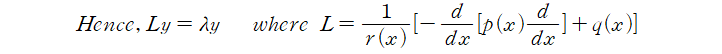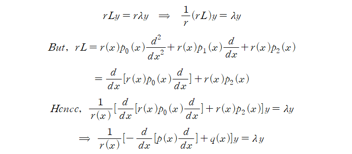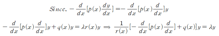 우리가 얻은 가중치 함수 $r(x)$를 곱하면 임의의 미분방정식도 스투름-리우빌 미분방정식의 형태로 바꿀 수 있음을 알게 되었습니다. 연산자를 이용해서 마저 표현해보겠습니다.