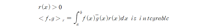 $<f,g>_r$은 가중치함수를 고려한 내적(inner product)인데, 해당 내적의 값이 존재하여, 적분이 가능해야 합니다.