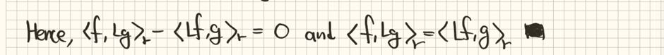 이처럼 켤레화를 했을 때 연산자의 위치가 변하고, 이를 이용하면 내적을 이용해서도 자기수반성을 표현할 수 있게 됩니다, 계속 증명을 이어나가겠습니다.