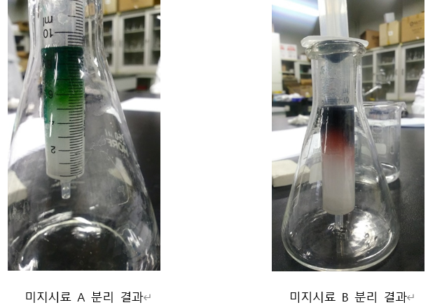 7. 미지시료 B를 1)~6) 과정을 거쳐 분리하고, 사진촬영을 한다.