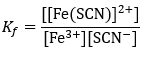 반응 계수비에 따라 생성된 물질의 몰 농도를 알면 초기 물질들의 농도에 비하여 얼마나 물질들이 반응했는지를 알 수 있기 때문에 이를 이용해서 형성상수의 값을 구할 수 있다. 구한 농도 값을 $x$, 초기의 $Fe^{3+}$의 농도와 $[SCN^-]$의 농도를 각각 $a, b$라고 하자. 반응 계수비를 이용해서 평형 상수를 구할 수 있다.
