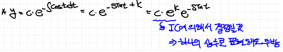적분상수는 결국 초기조건에 의해 결정됩니다. 그렇기에 위의 과정을 거쳐 식을 정리할 수 있습니다.