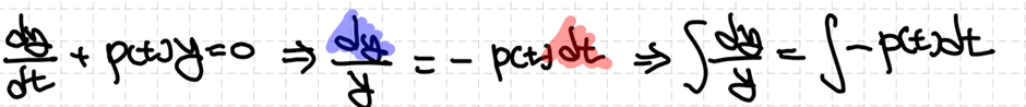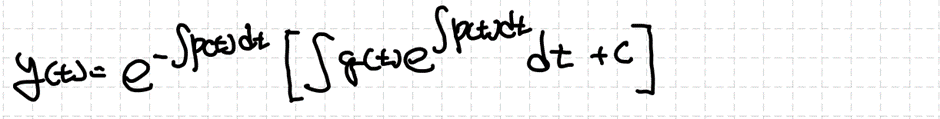 왼쪽 항은 적분이 가능하지만 오른쪽 항은 p(t)의 형태에 의존하기에 문제 상황에 맞게 계산해야 합니다.