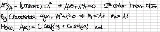 위의 과정을 따라 식을 정리할 수 있습니다. 지금은 어떤 음수로 일정할 것이라고 가정했지만, 주어진 경계조건에 따라 다른 부호의 값을 따르는 경우도 있습니다. 원래는 그냥 어떤 상수로 일정하다고 두면 되겠습니다.