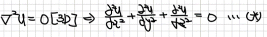 3차원 라플라스 방정식을 예로 들어보겠습니다. 3차원 편미분방정식이므로 아마 3개의 상미분방정식 풀이로 바뀔 것입니다.